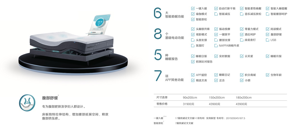 功能:一键入眠+智能放松+腹部舒缓